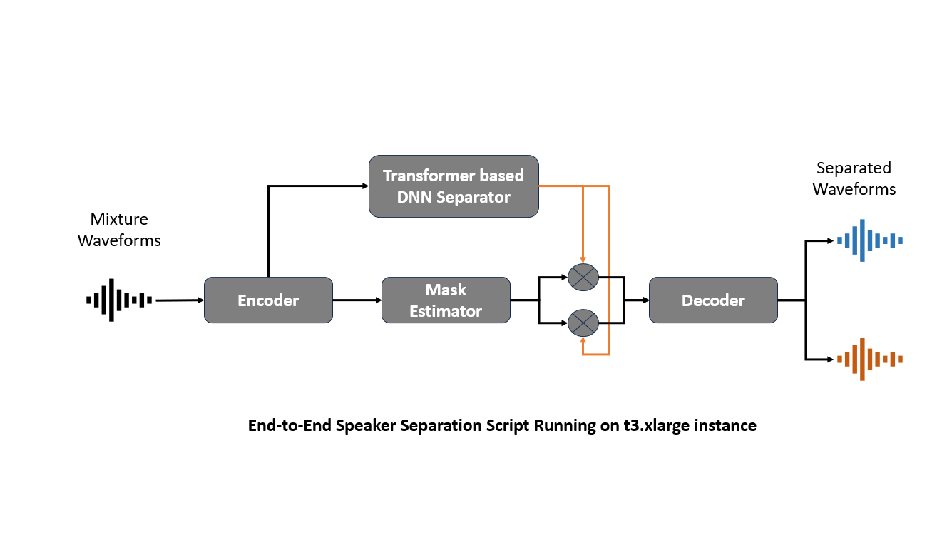 - Trained the separation model on an NVIDIA A100 GPU instance with preprocessed audio data to predict the separated sources.